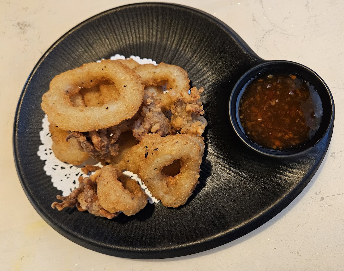 After a long day of driving and most eateries closing at 8 in West Jefferson, we were very grateful for Thong Summit being able to serve us a hot and fresh dinner with refreshing Thai teas at 8 pm. Pictured is the signature fire hot fried chicken. It was more savory with some kick and very delicious. Only hiccup - Our shu mai initially came out cold in the middle but they kindly refired.